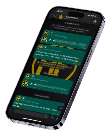 Te contactaremos 2 veces por semana vía whatsapp para solucionar tus dudas y asegurarnos de que estás en el camino correcto.
