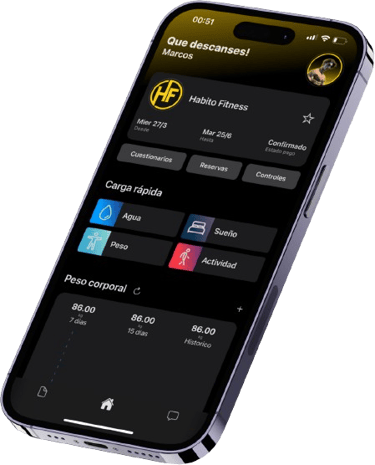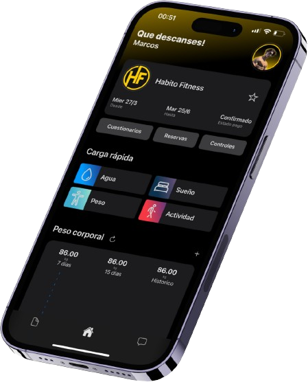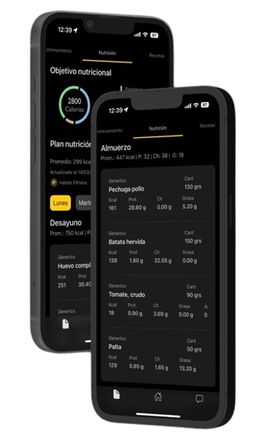 Donde encontrarás tu programa de entrenamiento y alimentación personalizado. Disponible para android, IOs y Web.