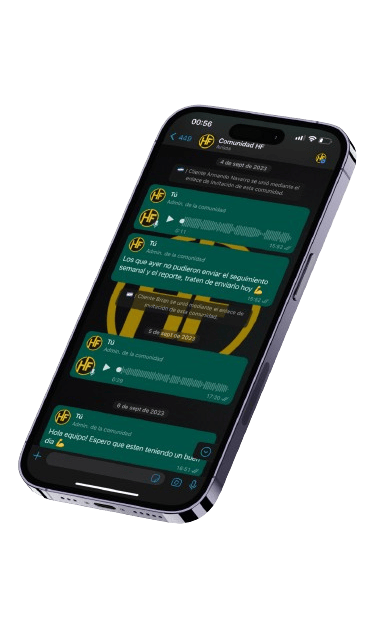 En el #TEAMHF tendrás un equipo de coaches y nutricionistas guiándote paso a paso.